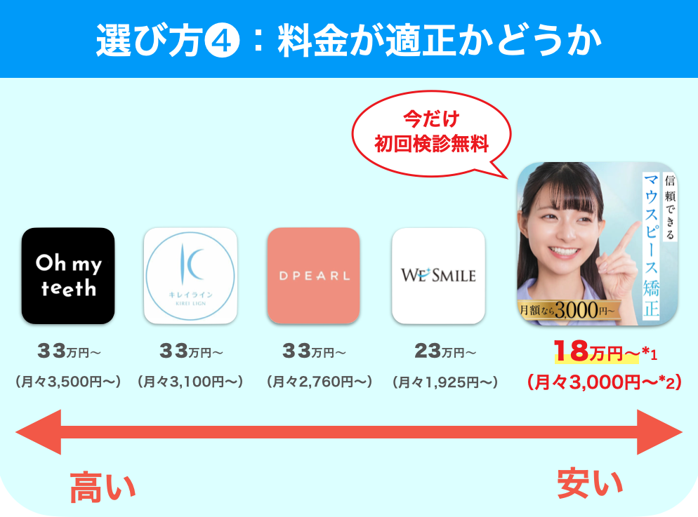 部分矯正やオンラインサポートなど、合理的な工夫による安さであれば、むしろコスパが高いと言えます。
