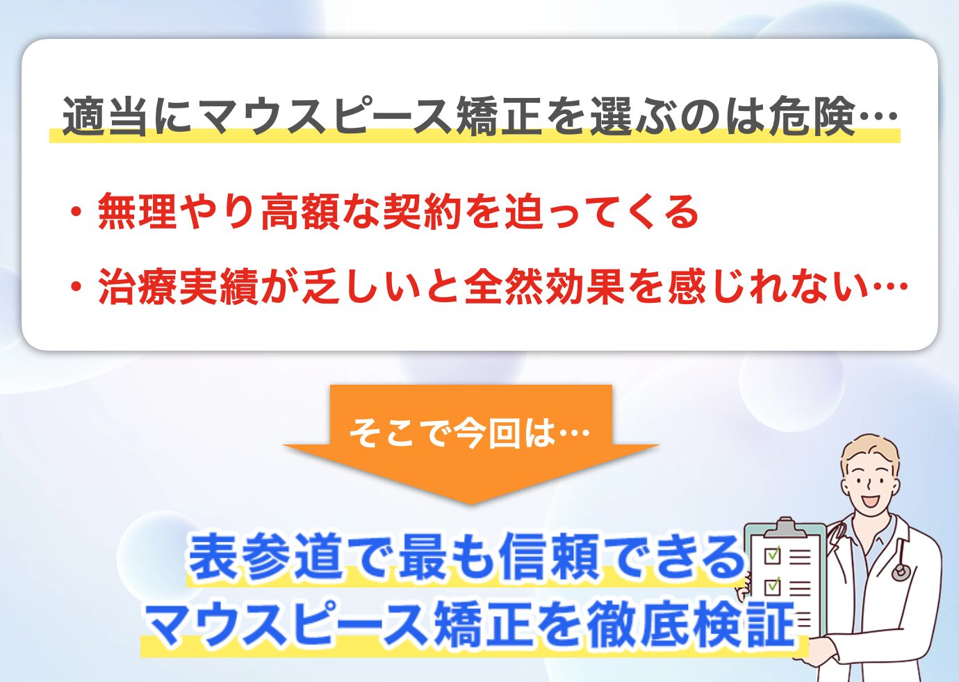 とはいえ、マウスピース矯正を適当に選ぶと、無理やり高額な契約を迫られたり、全然効果を感じられないことも少なくありません。
